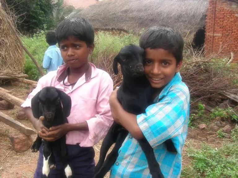 Public school kids playing with goats. Photo: Pete